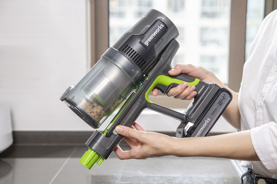 Пылесос беспроводной вертикальный аккумуляторный Greenworks Арт. 4701407UB, 24V, с 1хАКБ 4 Ач и ЗУ. Мощный беспроводной пылесос. Устройство два-в-одном: вертикальный пылесос и ручной пылесос. Работа до 45 минут на одном заряде аккумулятора. Четыре насадки в комплекте, включая одну электрощетку на устройстве. Впечатляющая мощность 500 Вт; Мощность всасывания 160 Вт; Бесщеточный двигатель (инверторный); Емкость контейнера для пыли 0,5 л; Максимальный воздушный поток 21 л/с; LED дисплей с индикацией режима работы, оставшегося времени; Фильтр HEPA13 удаляет мельчайшие частицы пыли, аллергены, бактерии ; LED подсветка на щетке для уборки мест c низкой освещенностью; Четыре насадки для различных задач: универсальная электрощетка, щелевая насадка, щетка для корпусной мебели, насадка 2-в-1 (удобна для уборки в салоне автомобиля); Электрощетка разбираются для чистки без инструмента; Клипса для хранения насадок на трубке; Вес без АКБ 2,3 кг. Работа от 24V аккумулятора совместимого с другими устройствами из линейки 24V. Расширенная гарантия на устройство 3 года. Гарантия на аккумулятор 2 года. Состав комплекта: Пылесос аккумуляторный Greenworks 24V; Аккумуляторная батарея Greenworks 24V, 4Ач; Зарядное устройство Greenworks 24V, 2А; Руководство по эксплуатации, Четыре насадки: электрощетка установлена на устройстве + 3 дополнительные; Клипса для хранения насадок на трубке. |