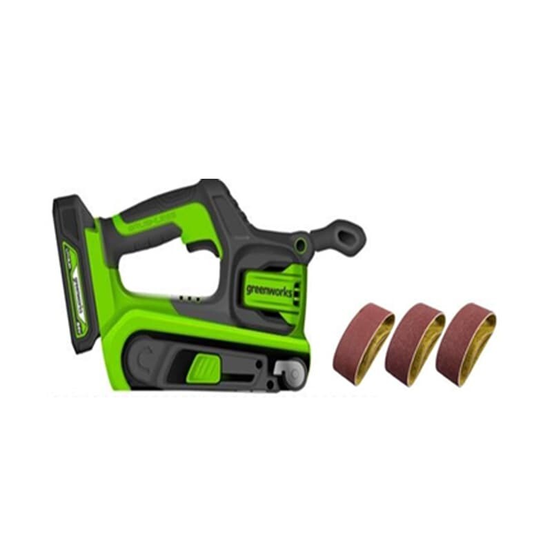 Ленточная шлифовальная машина бесщеточная аккумуляторная Greenworks G24BS, 24 В, без АКБ и ЗУ предназначена для тяжелых работ по шлифовке поверхностей.