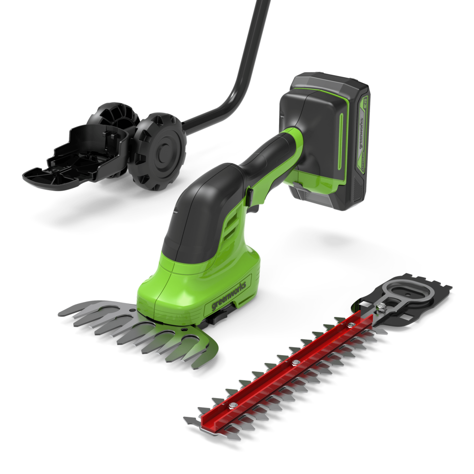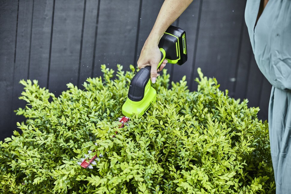 Садовые ножницы-кусторез аккумуляторные GreenWorks 24 вольт (артикул 1600607) - новинка 2021 года. Ножницы сочетают в себе 2 основные функции: Ножницы садовые для стрижки травы и кромки газона; Легкий ручной кусторез для ухода за кустарником. Основное назначение - финишная обработка газона(с лезвием для стрижки травы шириной 12 см), стрижка травы в труднодоступных местах, стрижка травы у кромки газона, а благодаря сменному лезвию-кусторезу длиной 20 см. и шагом среза 8 мм. данные ножницы превращаются в легкий кусторез. Для замены лезвий не требуются инструменты. Одно из основных преимуществ модели - ее вес, всего 1000 грамм. Ручка ножниц прорезинена для предотвращения соскальзывание вашей руки во время работы. Благодаря высокой частоте резов в минуту - 2400, работать комфортно как в режиме садовых ножниц, так и в режиме кустореза. Садовые ножницы-кусторез работают от аккумулятора 24 Вольта и являются одним из 20-ти устройств системы GreenWorks G-24V, работающей от единой аккумуляторной баттареи. В качестве дополнительного аксессуара можно приобрести телескопическую ручку (арт. 2935207), для комфортной работы по обработке газона. Гарантия составляет - 3 года. Преимущества модели: Легкий вес - 1 кг.; Лезвие с алмазной заточкой для стрижки кустов длиною 20,0 см и шагом среза 8 мм.; Лезвие для стрижки травы шириной 12 см.; 2-е функции в 1одном устройстве – садовые ножницы и кусторез Доступна дополнительная удлинительная рукоять Отсутствие вредных выхлопов Малый уровень шума и вибрации Отличная альтернатива бензиновому или электрическому устройству Экономия на обслуживании по сравнению с бензиновыми аналогами Система взаимозаменяемых аккумуляторных батарей – одна аккумуляторная батарея может использоваться со всеми инструментами серии 24 В. Гарантийный период обслуживания – 3 года Состав комплекта: Садовые ножницы-кусторез аккумуляторные GreenWorks, 24V артикул 1600607; Лезвие для травы; Лезвие - кусторез; Руководство по эксплуатации; Гарантийный талон. Внимание: данный комплект поставляется без аккумулятора и зарядного устройства. |