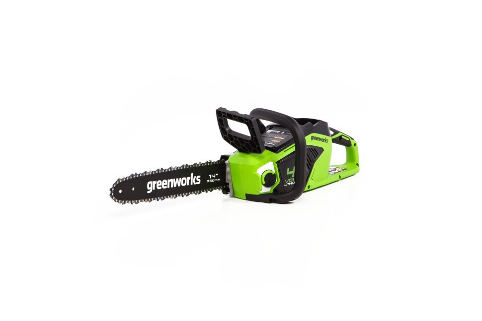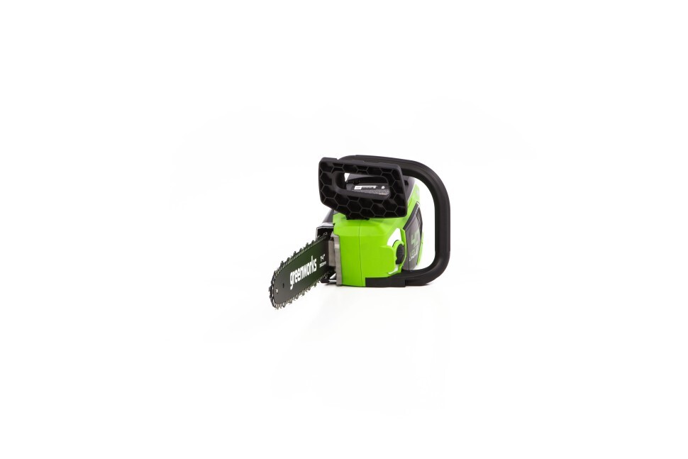 Цепная аккумуляторная пила GreenWorks 40 вольт (модель GD40CS15) - полупрофессиональная цепная пила, которая отлично подойдет для полноценного ведения дачного хозяйства. Ее надежный бесщеточный двигатель сопоставим по мощности с бензиновыми аналогами на 1,7 л/сил. При этом электродвигатель пилы GreenWorks абсолютно экологичен, имеет высокий крутящий момент (пилит быстрее бензинового аналога), имеет низкий уровень шума и вибраций, а так же прост в эксплуатации потому, что не требует подготовки масло-бензиновой смеси и какого-либо обслуживания. Включение пилы производится одной кнопкой. Замена и установка цепи не требует инструмента. Данная модель обладает компактными размерами, небольшим весом и долгим автономным временем работы (до 110 спилов от 4 А/час батареи), что делает ее незаменимым помощником на даче и в лесу. Пила оснащена шиной (35 см) из кремнистой стали и цепью производства компании Oregon. Масляный бачок для смазки цепи имеет прозрачный корпус, чтобы вы всегда могли следить за уровнем масла. Для безопасности предусмотрен предохранитель включения и тормоз цепи. Для долговечной работы двигатель имеет защиту от перегрузки. Пила работает от аккумуляторной батареи G-MAX 40V, которую можно использовать с другими устройствами линейки 40V (15+ устройств). Преимущества модели: Мощный бесщёточный двигатель DigiPro; Компактный размер и малый вес; Скорость вращения цепи 12 м/с; Время автономной работы до 110 спилов от 4 А/час батареи; Шина и цепь Oregon; Прорезиненная рукоятка; Низкий уровень вибрации <2,5 м/с2; Низкий уровень шума 92 ДБ; Ключевая замена и натяжение цепи; Прозрачный масляный бачок (200 мл) - для удобного контроля уровня масла; Предохранитель включения и тормоз цепи; Защита двигателя от перегрузок; Работа от 40V аккумулятора совместимого с другими устройствами из линейки 40V; Гарантия 3 года.